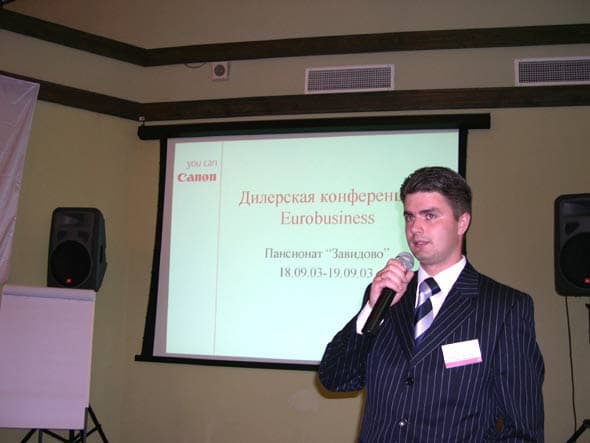 18 — 19 сентября компания EuroBusiness собрала своих партнеров на второй ежегодной дилерской конференции в комплексе отдыха «Завидово» в Тверской области. В рамках конференции представители компании подвели итоги деятельности за прошедший год, рассказали о концепции развития на 2004 год, а приглашенные представители компаний-производителей поведали участникам мероприятия о маркетинговых программах и новой продукции.