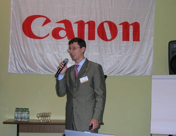 Представитель компании Canon в своем выступлении напомнил дилерам об обновлениях линеек принтеров, сканеров, многофункциональных устройств, копировальных аппаратов и факсов во втором полугодии 2003 года, а также рассказал о проводимых Canon маркетинговых программах.