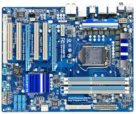 GA-P55-UD3R аналогична предыдущей, но поддерживает иную графическую систему: слоты представлены одним PCIE2.0 x16 (16 линий) и одним PCIE x16 (4 линии, ATI CrossFireX и NVIDIA SLI не поддерживаются). Отличилась плата и количеством портов PCI: их здесь четыре штуки.
