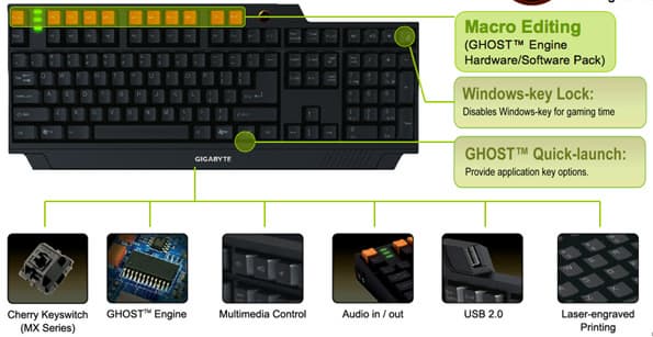 «Первая механическая клавиатура в мире» — именно так назвали маркетологи компании модель GK-K8000. Все ее клавиши механические, включая функциональные (что и позволило компании назвать модель первой полностью механической). Клавиатура предоставляет настройку до 103 пользовательских профилей с возможностью настройки макросами: модель оборудована движком GHOST.