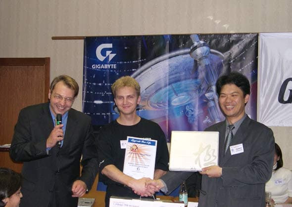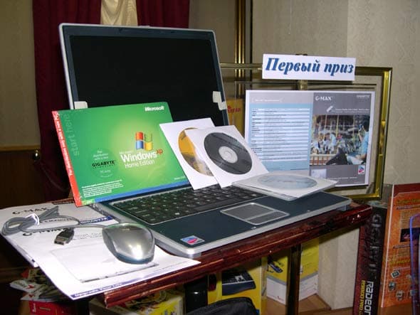 Победитель соревнований по сборке ПК получил главный приз чемпионата — ноутбук Gigabyte G-MAX на базе Intel Centrino.