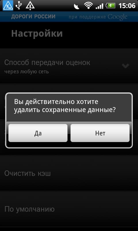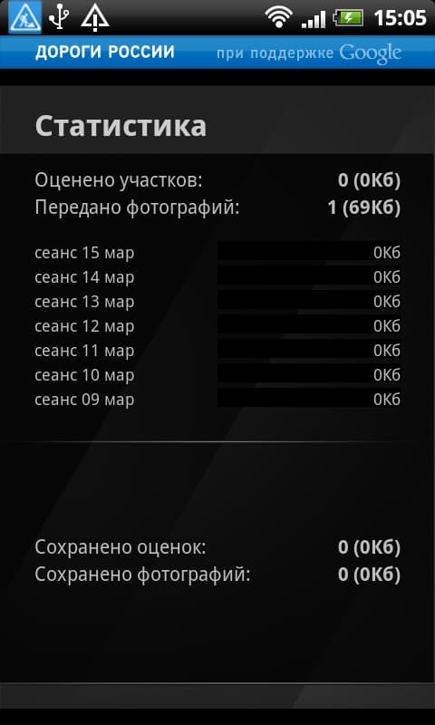 Со своего Android-смартфона пользователь может посмотреть статистику использования приложения на своем аппарате, саму карту с качеством дорожного покрытия, а также установить настройки типа передачи данных (через мобильный интернет или Wi-Fi).