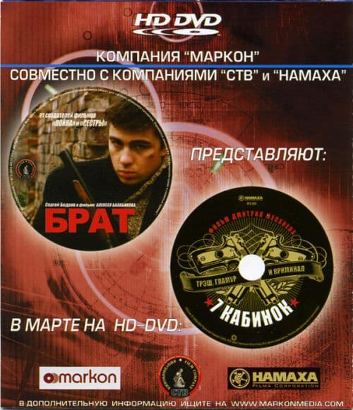 На мой взгляд, причины более прозаичны: выбирать было не из чего. Свежих российских хитов (пусть и однодневных) у Top Industry — рад-два и обчелся. Это вам не Первая Видеокомпания с ее «Дозорами», «Турецким гамбитом» и прочими блокбастерами. Однако не надо думать, что Top Industry — одни такие смелые. Остальные правообладатели тоже не сидели на месте: в ближайшее время в продаже появится HD DVD «Брат», затем — «Семь кабинок».