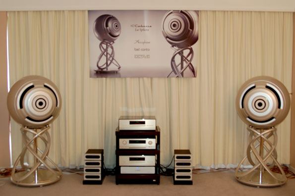 Здесь можно было посмотреть на знаменитые «глазные яблоки» от Cabasse — нестандартное внешнее исполнение колонок завораживало даже непосвящённых