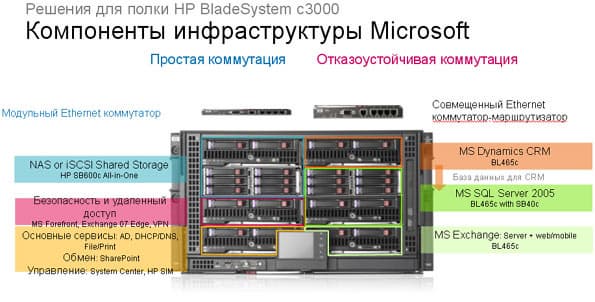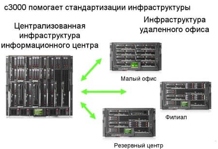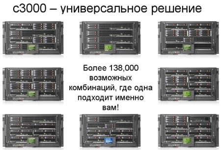 С HP BladeSystem c3000 компании среднего бизнеса могут воспользоваться всеми преимуществами полноценной blade-среды, ставшей более доступной. Более крупный модульный элемент инфраструктуры HP BladeSystem c7000 высотой 10U теперь может использоваться как центральный элемент больших информационных центров, а инфраструктуру удаленных офисов можно строить на базе с3000.