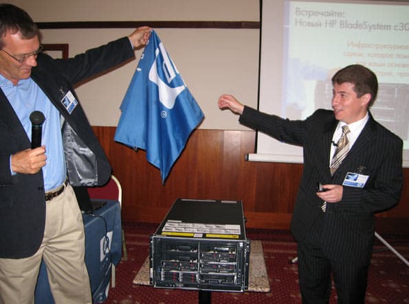 Первым делом они сообщили, что сегмент blade-систем растет быстрее, чем прогнозируют аналитики. Число клиентов компании за прошедший год значительно выросло, было совершено больше полноценных закупок после пробных партий 2006 года. В результате, доля blade-серверов в общем объеме продаж серверов HP в России увеличилась за год в два раза, дойдя до отметки в 8%.