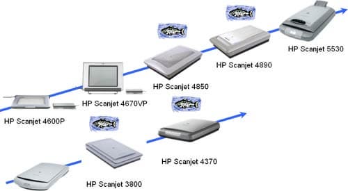 Линейка сканеров HP Scanjet для профессионалов каких-либо изменений не претерпела, в нее по-прежнему входят пять моделей — HP Scanjet 5590, HP Scanjet 7690, HP Scanjet 8200, HP Scanjet 8250 и HP Scanjet 8290. А вот ряд сканеров HP для дома и малого офиса пополнился сразу четырьмя новинками. Они предназначены для повседневного использования и рассчитаны на домашних пользователей и фотографов-любителей, заинтересованных в оцифровке документов, фотографий, а также слайдов и негативов.