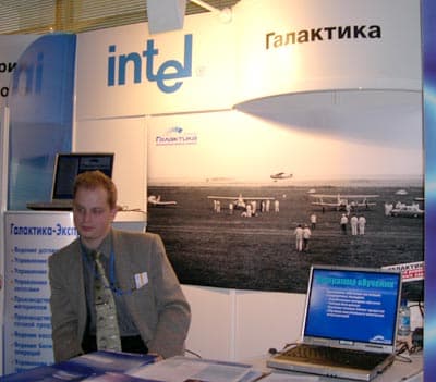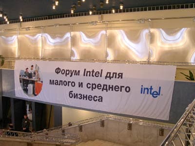В фойе Центрального дома предпринимателя, где проходил Форум Intel, была развернута выставка комплексных решений для малого и среднего бизнеса.