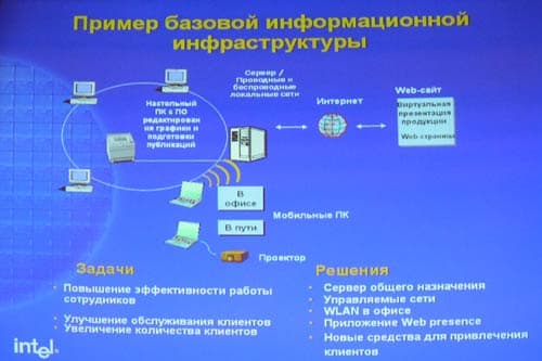 Вопрос замены парка компьютеров на малых предприятиях стоит очень остро — как показало исследование аналитической компании Meta Group, в этом секторе рынка продолжают доминировать ПК, купленные еще в 90-е годы. Многие предприятия малого и среднего бизнеса откладывают замену парка компьютеров, из-за недостаточности средств стараются использовать имеющиеся у них ИТ-решения как можно дольше, один компьютер зачастую используется несколькими работниками. В данной ситуации денежные средства не используются экономно, как это может показаться, наоборот, такая стратегия негативно влияет на итоговую прибыль из-за увеличения расходов на техническое обслуживание и снижения конкурентоспособности компании. Поэтому для развития экономики России и ее малого и среднего бизнеса просто необходимо быстрое и массированное обновление парка ПК. При этом мало лишь закупить современную технику — нужно экономически эффективно развернуть компьютерную систему на базе новых программных и аппаратных средств и интегрировать ее непосредственно в производственный процесс предприятия. Производительность, простота управления и высокая безопасность — главные причины, по которым компаниям стоит обновлять компьютерное оборудование. Корпорация Intel активно стремится помочь российскому малому и среднему бизнесу в решении этих проблем.