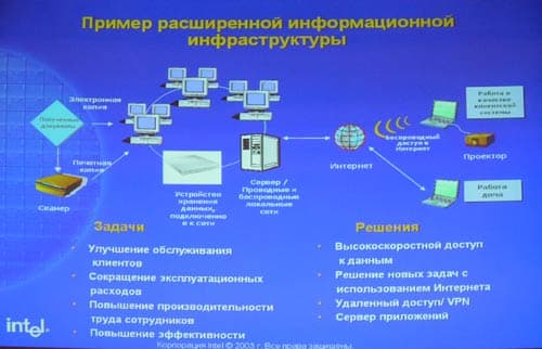 Если говорить о каждом элементе инфраструктуры — настольных и мобильных компьютерах, серверах и сетях, то Intel делает акцент на следующих решениях: