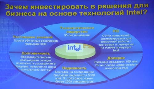 На вопрос, зачем инвестировать в решения для бизнеса на основе технологий Intel, отвечает следующий слайд: