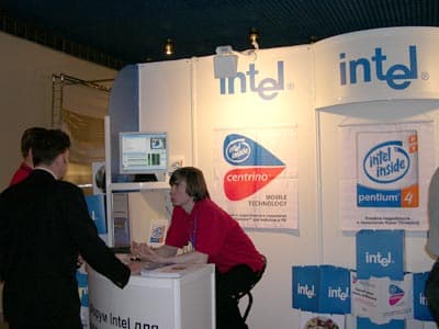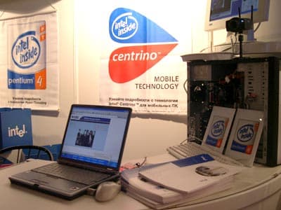 На стенде также можно было увидеть как изображение с видеокамеры передавалось по беспроводной сети на экран ноутбука на базе Intel Centrino.