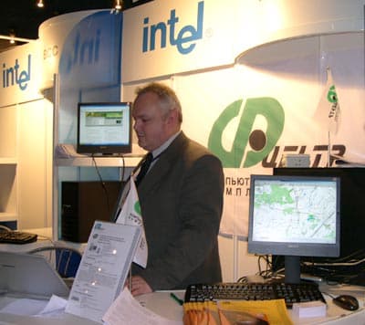 Компания «Ф-Центр» представляла на стенде компьютеры собственного производства под торговой маркой «МИР». Корпоративный отдел компании предлагал комплексные интегрированные решения для создания информационных систем на предприятиях различного профиля.