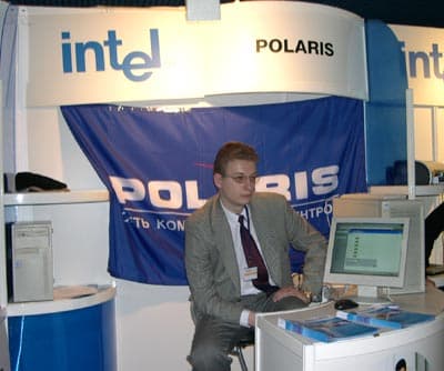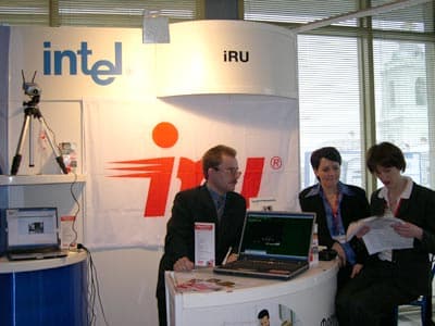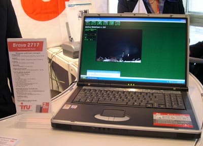 На стенде iRU можно было познакомиться со всей линейкой ноутбуков компании и, в частности, с флагманской моделью — Brava-2717 на базе Intel Pentium 4 с поддержкой HT, встроенным DVD-RW и 17-дюймовым дисплеем.
