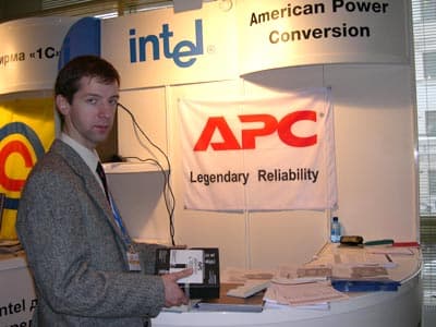 APC представляла решения как для домашних, так и для корпоративных сред; от замков и стальных тросов для обеспечения безопасности ноутбуков, сетевых фильтров для мобильных компьютеров до высокопроизводительных систем защиты электропитания для серверов и локальных сетей. На стенде можно было увидеть новинку — Back-UPS 800 BA.