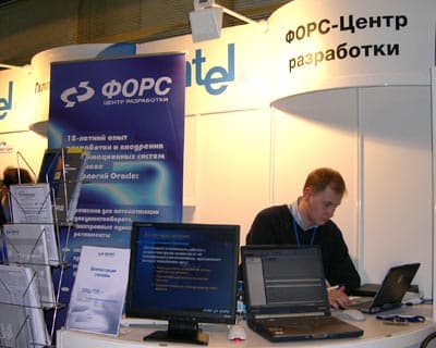 На стенде компании «ФОРС — Центр разработки» можно было увидеть демонстрацию решений на базе технологий Oracle для среднего бизнеса: