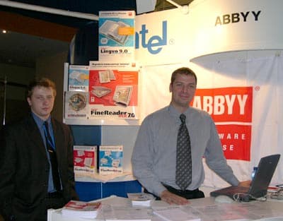 Компания ABBYY демонстрировала в рамках выставки систему распознавания FineReader 7.0 (Corporate Edition с поддержкой сетевой установки и Professional Edition); электронный словарь Lingvo 9.0 с поддержкой сетевой установки, PC и PocketPC (скоро на сайте компании можно будет скачать версию словаря для Palm); FormReader 6.0 Desktop Edition — готовое решение для автоматизации процесса распознавания данных с бумажных форм.