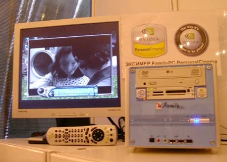 На стенде NVIDIA можно было увидеть мультимедийную систему Эксимер FamilyPC Personal Cinema на базе GeForce FX 5600, поставки которой начнутся к концу этого года.