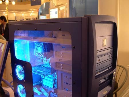 На стенде компании Fujitsu Siemens Computers были представлены мобильные продукты, созданные на базе технологии Intel Centrino для мобильных ПК, а также модульные серверы PRIMERGY BX 300.