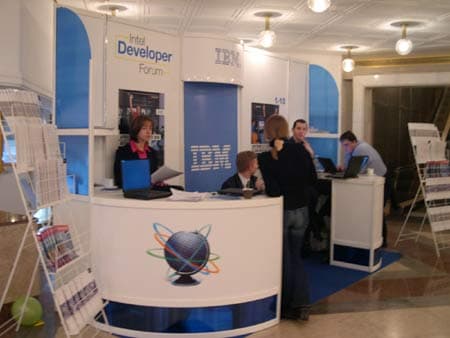 Теперь осталось рассказать о выставке, которая была проведена в рамках Форума Intel для разработчиков. Практика организации подобных выставок передовых компьютерных и коммуникационных технологий является традиционной для всех IDF и позволяет разработчикам увидеть воочию новинки и последние разработки, демонстрирующие уровень развития современной цифровой индустрии. На этот раз в выставочной программе Форума приняли участие около 30 компаний-лидеров мирового и российского рынка высоких компьютерных и коммуникационных технологий.