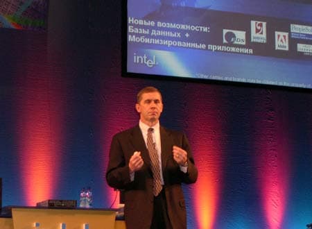 Стив Чейз выступил с вступительным словом — он рассказал о колоссальном интересе Intel к России, призвал российских разработчиков внести свой вклад в развитие новейших информационных технологий, возможностей, которые они предоставляют.