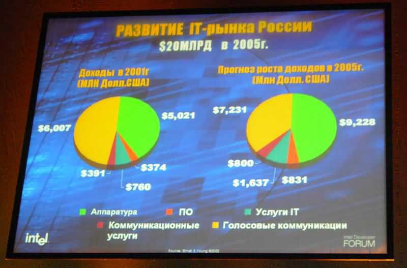 «Летом этого года во время своего визита в Москву глава нашей корпорации Крейг Барретт обратился с призывом «сделать информационные технологии еще одним природным ресурсом России», — напомнил Стив Чейз. — По нашему глубокому убеждению, за счет целевых капиталовложений информационные технологии могли бы стать для России новым катализатором роста, иностранных инвестиций, повышения производительности труда и, как следствие, — повышения конкурентоспособности национальной экономики на мировой арене. В последнее время мы все чаще видим примеры того, как внедряемые инновации благотворно влияют на российский бизнес, повышают его конкурентоспособность, облегчают общение с партнерами и заказчиками. Форум Intel для разработчиков, уже зарекомендовавший себя как важнейшее технологическое мероприятие года, в очередной раз продемонстрирует передовые продукты и решения, меняющие мир на наших глазах. Невозможно переоценить вклад российского сообщества разработчиков в формирование нового профиля мировой IT-индустрии, и дальнейшее расширение ежегодной программы Форумов является признанием этого вклада на глобальном уровне».