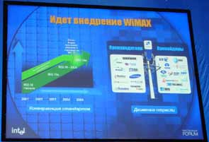На стендах можно было увидеть образец WiMAX оборудования и плату с первым WiMAX-чипом Rosedale.
