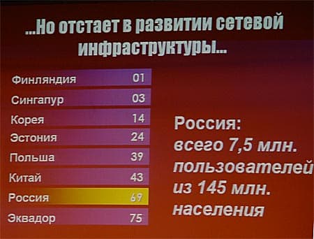 Однако в существующих условиях Россия все-таки имеет особые преимущества. За счет слабого развития сетевой инфраструктуры нашей стране проще перейти к внедрению самых современных ИТ-технологий, что, кстати, не в последнюю очередь может быть обусловлено относительно высокими темпами экономического развития. Отсутствие такого «балласта» компьютерного оборудования предыдущих поколений, каким обладают более развитые в сфере информационных технологий государства, играет России только на руку.