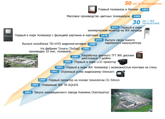 Курс на продвижение технических инноваций является одной из традиций созданной в 1912 г. в Японии компании, вначале носившей название «Hayakawa Electric», а в 1970 г. переименованной в «Sharp». За время своего существования она неоднократно играла роль первопроходца. Об этом свидетельствуют, в частности, ее автоматический карандаш со вставным грифелем (появившийся в 1915 г.), первый японский прототип телевизора (1951 г.), первый электронный калькулятор с жидкокристаллическим дисплеем (1973 г.), лицензия на который была приобретена у американской фирмы «RCA», запатентовавшей свое изобретение в конце 60-х годов, первая японская электронная записная книжка (1987 г.), разработанный ею самой компьютерный ЖК-монитор размером 14 дюймов по диагонали (1988 г.), первые ЖК-телевизоры с 20-дюймовым экраном (1999 г.) и первый телефон в комбинации с фотоаппаратом (2000 г.). Тем не менее, в деловых кругах Запада «Sharp» долгое время не воспринималась в качестве серьезного конкурента, и только теперь отношение к ней, похоже, меняется.
