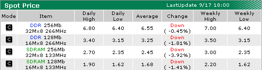 На волне всеобщего ажиотажа цена действительно росла просто катастрофически — по 15% в день, но затем пришло время расплачиваться. Рынок опять рухнул. На этот раз несильно — в прошлый раз он и так почти достиг дна, дальше ему просто некуда было падать. Так, цена 128 Мбит чипов SDRAM практически равна цене 64 Мбит чипов…