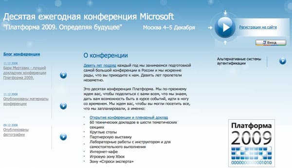 Конечно, интересные темы все равно были: в центре внимания оказались Windows 7, Silverlight 2, и Internet Explorer 8, но полноценными лончами это назвать нельзя: до коммерческого релиза Windows 7 еще больше года, а Silverlight 2 и Internet Explorer 8, наоборот, уже были доступны всем желающим, и, к тому же, разговор о них шел на конференции ReMIX (когда приезжал Стив Балмер). Поэтому главным «анонсом» и «новинкой» Платформы 2009 можно назвать нового президента Microsoft Rus — Николая Прянишникова, представленного на закрытии нынешним руководителем российского офиса Биргером Стеном.