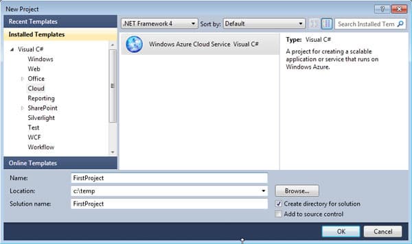 Одним из главных достоинств новой версии Visual Studio является как раз удобная работа с Azure. Речь идет о наборе инструментов Windows Azure Tools. Для включения Windows Azure Tools надо выбрать команду Cloud Services в панели New Project.