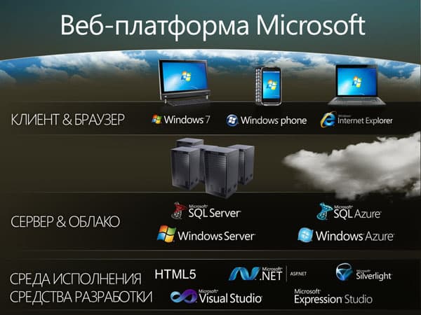 Таким образом, благодаря тесной взаимосвязи продуктов и сервисов, а также тому факту, что в совокупности они отвечают запросам, которые могут возникнуть на любых этапах разработки веб-приложения, можно говорить о том, что Microsoft предлагает комплексное аппаратно-программное решение для взаимодействия с Сетью. Аппаратное — потому что помимо программных продуктов Microsoft с этого года предлагает разработчикам вычислительные мощности своих дата-центров. Речь, как вы уже поняли, идет о Windows Azure.