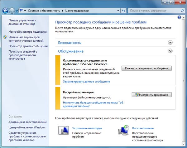 Щелкаем по флажку — и открывается окошко, где перечислены все оповещения безопасности. Там же можно и открыть центр поддержки. Если же вы считаете, что оповещений слишком много, то это можно изменить в Настройке центра поддержки.