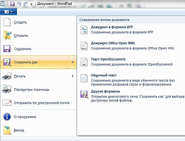 В принципе, WordPad вполне подойдет для работы над простенькими текстовыми документами и, что-то мне подсказывает, что большинство «юзеров» используют в Microsoft Word только те простейшие функции, которые есть в WordPad (о существовании которого они могут вообще не знать). Но у WordPad в Windows 7 есть один очень серьезный недостаток (который затрагивает как раз самых неопытных пользователей) — это отсутствие поддержки формата .doc. WordPad поддерживает файлы с расширениями .docx, .rtf, .odt и .txt, но самый популярный текстовый формат .doc — нет.