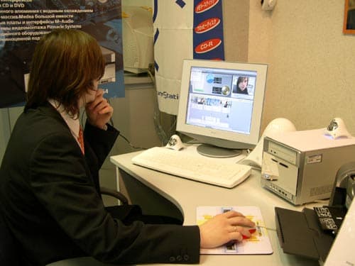 Для этой цели в конференц-зале, где проходила презентация, была установлена «студия», центром которой стал компьютер с процессором Intel Pentium 4 3 ГГц с технологией HT на базе SB65G2.