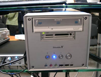 Было продемонстрировано использование компьютера на базе платформы Shuttle XPC в качестве центра домашнего кинотеатра с поддержкой форматов DivX, DVD и… следующего поколения видео — High Definition (для воспроизведения роликов этого формата использовался Microsoft Windows Media Player 9).