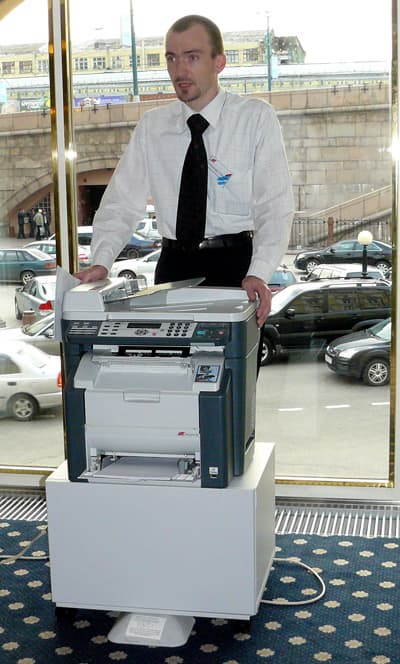 Точную цену аппарата выяснить не удалось — около 1000 долларов. Но представители компании подчеркнули, что он на 15% дешевле аналогичных МФУ других производителей.