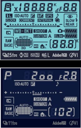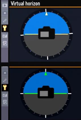 Для удобства съемки в любых условиях, камера не только имеет вспомогательный экран с переменной подсветкой, но и индикатор уровня горизонта, позволяющий определять положение аппарата как в горизонтальной, так и в вертикальной ориентации. Угол наклона горизонта можно отслеживать как через видоискатель, так и на экране аппарата.