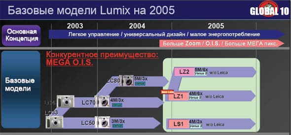 Прежде чем рассказывать о цифровых фотокамерах экспозиции Panasonic, заметим, что все новинки модельного ряда Lumix 2005 года построены на «трех китах».
