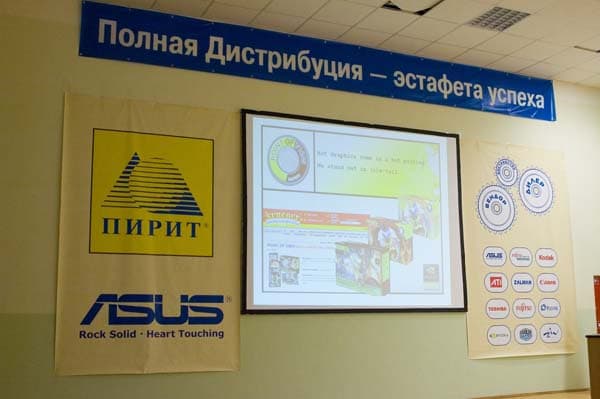 В принципе, у большинства из нас продукция компании ASUS ассоциируется именно с ПИРИТОМ, а значит, что данная формула как-то, но работает. Впрочем, на конференции был продекларирована концепция «ASUS +», предполагающая, что продукция ASUS является основой товарного предложения компании ПИРИТ-Дистрибуции, к которой добавляется продукция специализированных вендоров: ATI, Canon, Cooler Master, Fujitsu, Fujitsu Siemens, Kodak, Plextor, Zalman, которые являются реальными лидерами в своих сегментах и передют эту эстафету успеха нашим партнерам».