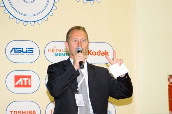 Перед участниками конференции также выступили: региональный менеджер Cooler Master по странам Восточной Европы Said Feddahi, управляющий директор Zalman Youngwoo Nam, менеджер по дистрибуции AMD в России и СНГ Анатолий Мартынов, директор по ОЕМ продажам Fujitsu Siemens Computers Peter Hoser, менеджер по работе с ключевыми клиентами Canon Сергей Данилочкин, менеджер по продажам оборудования Kodak Дмитрий Петренко, директор по развитию InPrice Data Systems (ZIV) Ярослав Кузьмицкий. Однако наиболее яркое впечатление произвел директор по маркетинговым коммуникациям в регионе EMEA ATI Technologies Ottemar Knauer, который кратко, но очень задорно в очередной раз рассказал нам, что ATI — это по-настоящему круто!