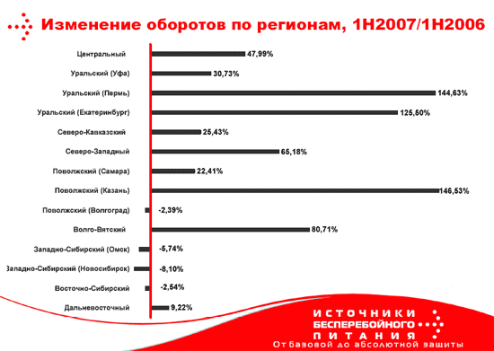 С момента предыдущей пресс-конференции российского представительства POWERCOM прошло не так много времени, однако компания решила провести в минувший четверг презентацию, на которой были озвучены некоторые новые цифры по итогам деятельности в первом полугодии 2007 года.