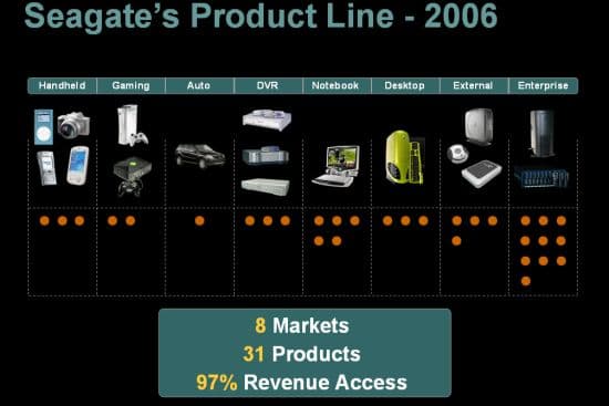 Компания достигла очень хороших финансовых показателей за прошлый год, в этом году (по данным за первый квартал до 31 марта 2006 г.) объем поставок составил 29,4 млн. шт., общий доход — 2,3 млрд. долл. Годовой рост составил примерно 25%. Компания Seagate широко представлена во всех сегментах рынка накопителей на магнитных дисках и является лидером по объему поставок, закрывая около 30 процентов рынка (в зависимости от сегмента).
