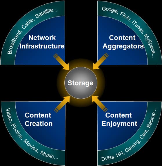 Понятно, основную долю контента составляют именно фото/видео/аудио, и все это надо где-то хранить. И здесь встает вопрос: не смогут ли флэш-устройства в скором времени полностью заменить хранилища на базе HDD (в их число входят не только винчестеры в персональных компьютерах, но и серверы, и портативные устройства на основе HDD)?