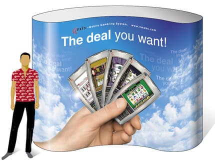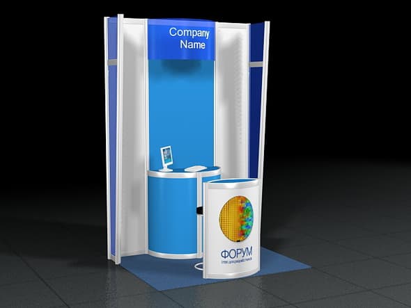 - Мобильный стенд поп-ап размером 3×3 м, широкоформатная печать на бумаге с ламинацией, включая дизайн-макет — 64500 руб.