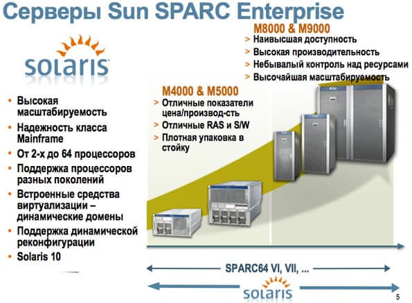 Новые серверы предлагают заказчикам высокую масштабируемость и надежность, поддержку процессоров разных поколений (без потери производительности), встроенные средства виртуализации (динамические домены), поддержку динамической реконфигурации.
