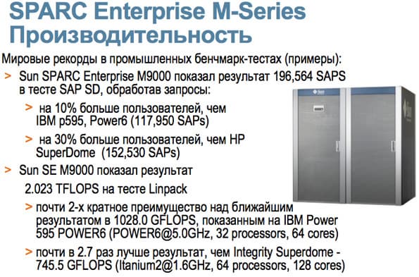 Новые серверы Sun также отличаются высокой производительностью и ставят мировые рекорды в промышленных бенчмарк-тестах.