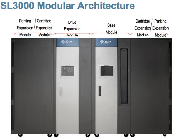 В секторе «Entry Enterprise» Sun предлагает новую библиотеку: SL3000. Архитектура этого решения содержит несколько модулей. Объем дискового пространства может наращиваться с помощью модулей расширения с картриджами. Кроме того, в новой библиотеке был заменен круговой робот. Основой его усовершенствования является ослабление требований к размещению модулей расширения друг относительно друга.