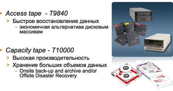 - Capacity tape T10000 — модуль, обладающий высокой производительностью, предназначенный для хранения больших объемов данных.